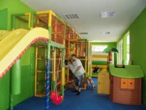 Za animaciju mališana igraonica sadrži: dvorac na naduvavanje, lavirint na dva nivoa, tobogan, kućicu za decu, ljuljaške, bazen sa lopticama, Nitendo Wii.